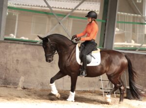 Olily kwam als veulen bij ons en we hebben haar gekocht vanwege haar uitstraling, exterieur en stamboek. Van de hengst Glock’s Taminiau waren we al erg gecharmeerd en we hebben hem ook een paar keer gebruikt op onze eigen merries. De overeenkomst van deze nakomelingen van Tamiau is ( = onze eigen ervaring) paarden met een koel karakter. Stoer, aan de maat en zwart tot donkerbruine kleur. Olily is de liefste van deze lichting Taminiau’s en heeft mss geen spectaculaire gangen, maar een heerlijk paard voor een dressuurruiter die daar mee aan de gang wil gaan en jarenlang een fijn recreatie sportpaard aan zal hebben.