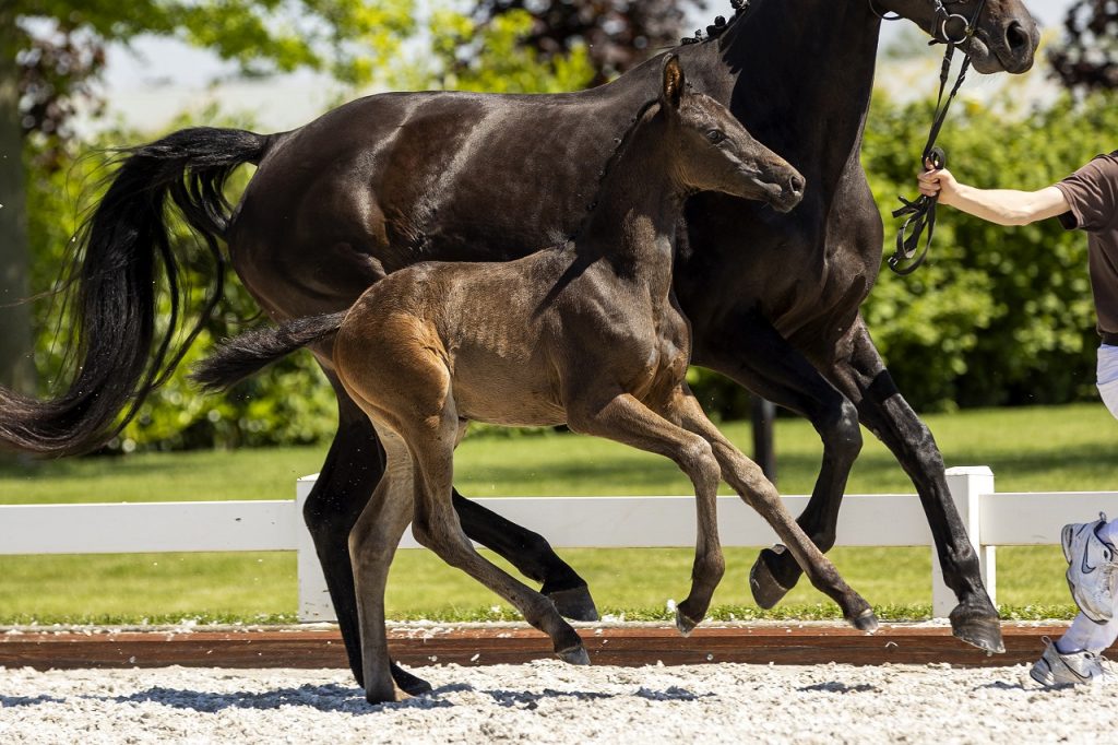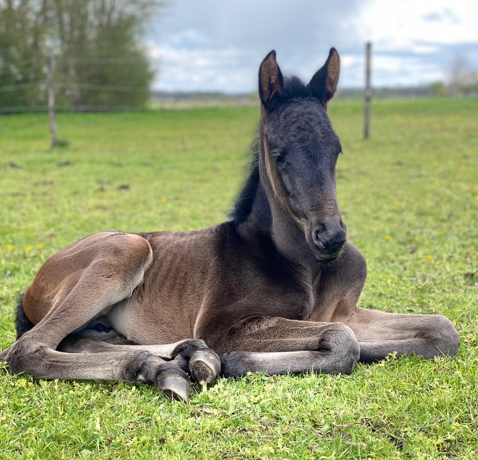 In 2020, through the Young KWPN draw at the stallion show in Den Bosch, we won a free mating, of the promising stallion LeFormidable. We didn't have to think long and used that mating that year on our black and tan EPTM mare Tessel ( Lilithiya Texel) by Governor. And what a beautiful foal she gave us.