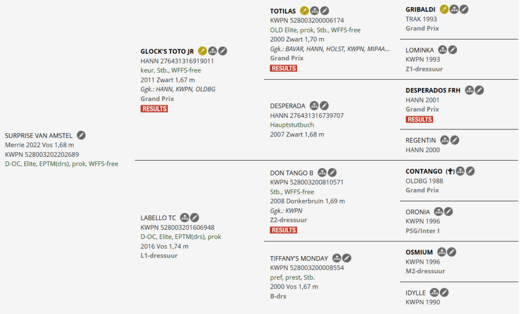 Meanwhile, Surpise is saddle broken and finished the EPTM in August 2025 with 78 points: Step 8, Trot 8, Gallop 8 and will continue to be trained by Maaike. But not for long, as she is expecting a foal around April 21, 2026. The first grandchild of primal mother Labello.