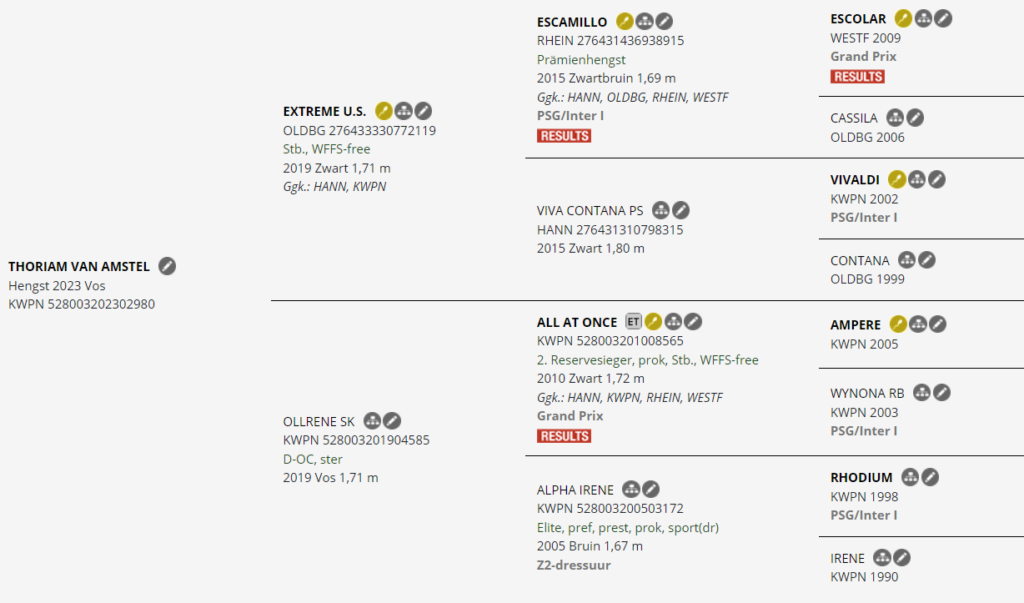 He is an offspring from the first crop of Extreme US and the first foal of the young mare Ollrene by All at Once. Extreme won the Pavo and the KWPN Stallion Competition 2023/2024 and received a high score of 89 points at the selection competitions in Kronenberg and Ermelo. Extreme U.S. has a very nice conformation, 3 very good basic gaits and comes from a super lineage. The Vivaldi dam of Extreme US and the dam of TotoUS are half-sisters. That Oldenburg lineage is so /ie /zo Top! This was a good reason to mate him with our youthful mare Ollrene, who already did the IBOP in her first year under saddle and has a STER predicate in her pocket.