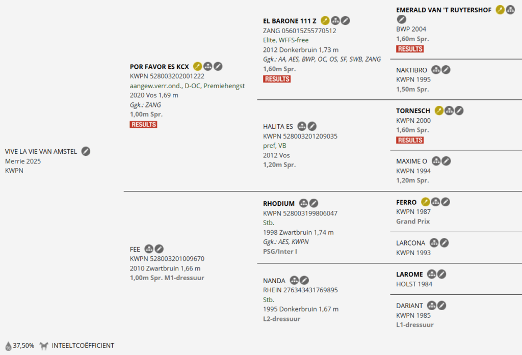 Studbook name: Vive La Vie van Amstel
