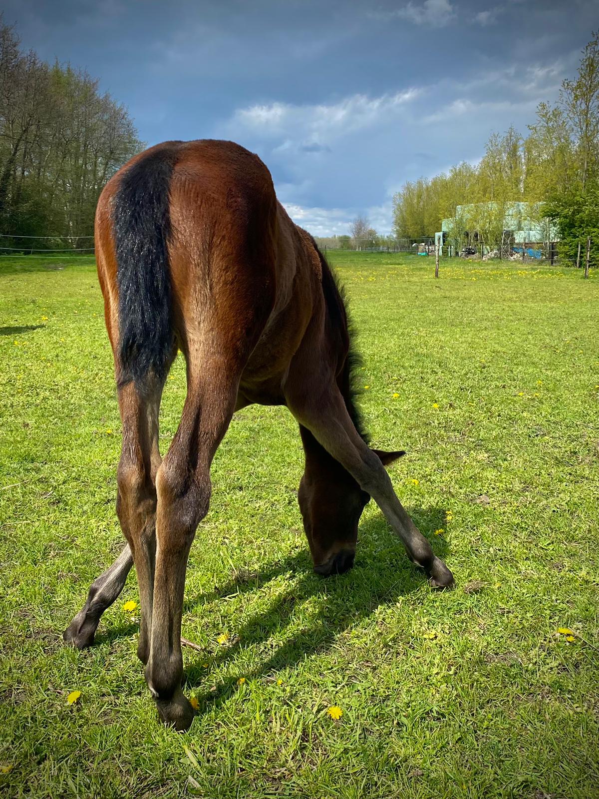 Na een fijne opfokperiode in Friesland is ze weer terug op de plek waar ze ook geboren is en waar ze 6 maanden, in 2021, een heerlijke veulentijd heeft gehad.
